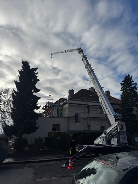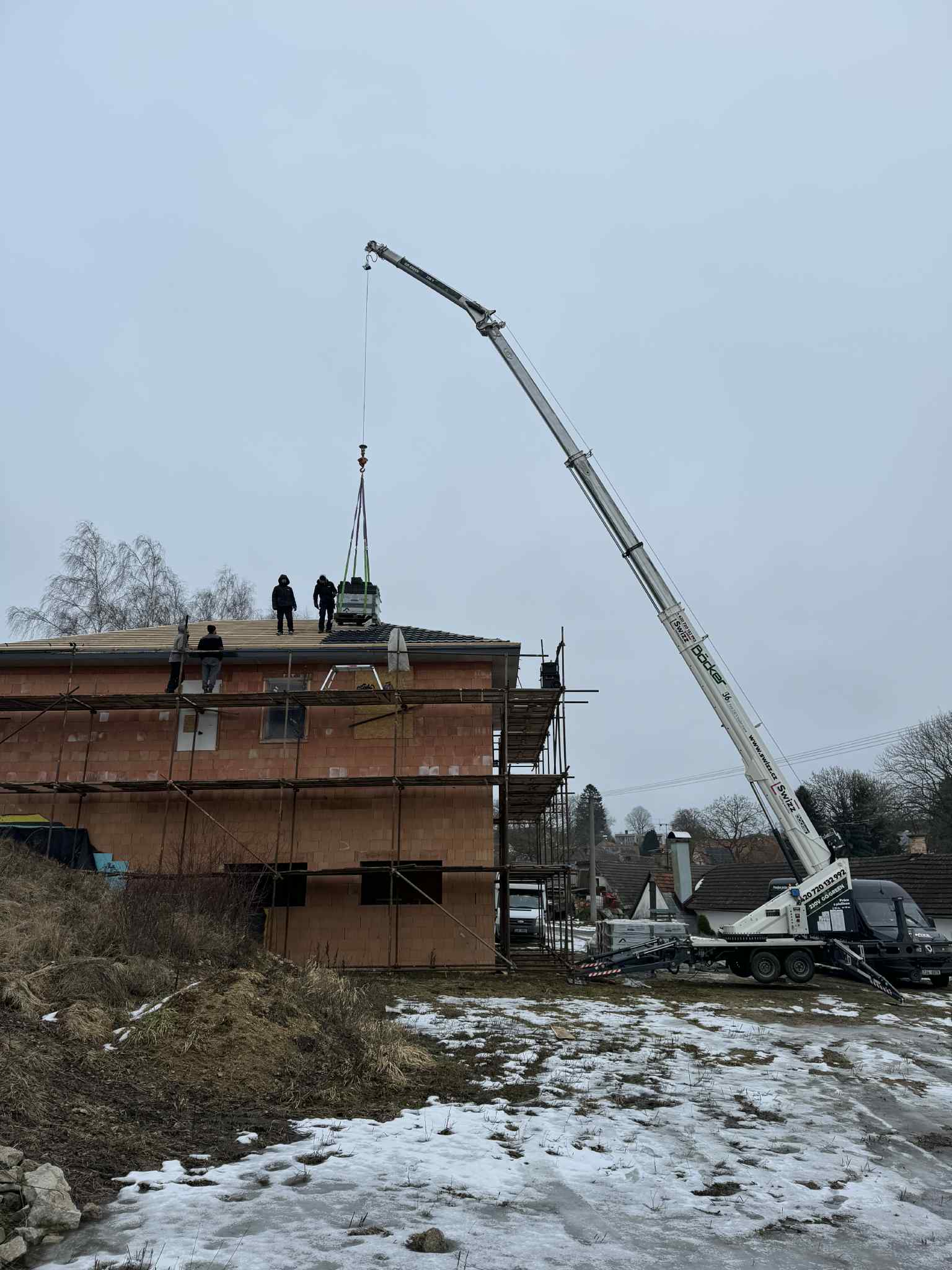 Montáže a opravy střech, krovů a střešních krytin. Bezpečné zvedání materiálu přímo na místo.