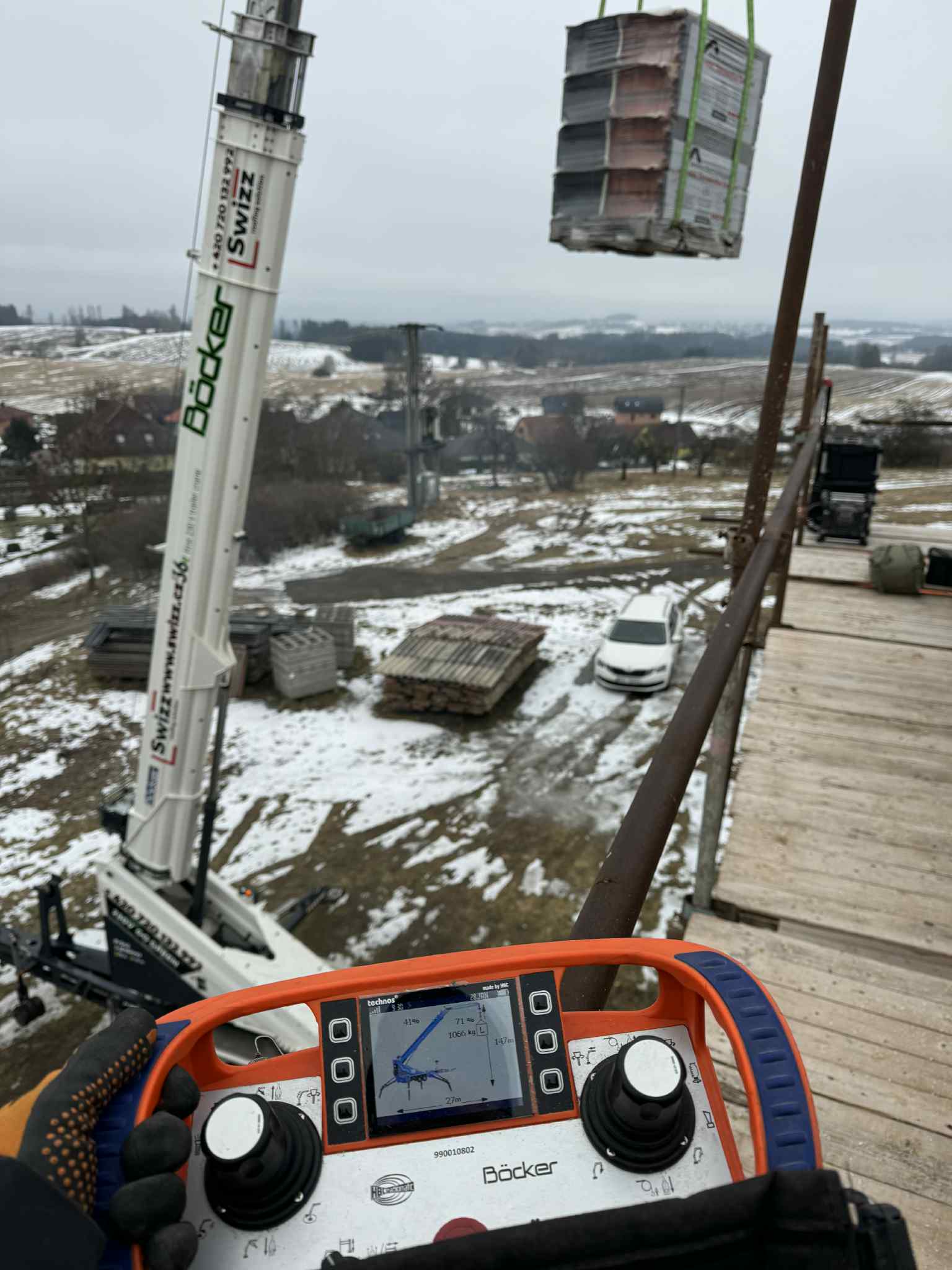 Hledáte flexibilní jeřáb a pracovní plošinu v jednom stroji? Nabízíme k pronájmu přívěsný elektrický jeřáb Böcker AHK 36e – moderní řešení pro zvedání materiálu i práce ve výšce. Díky tichému elektropohonu je ideální pro střechy, fasády, montáže oken i stěhování materiálu ve stísněných prostorech, halách nebo obytných zónách.